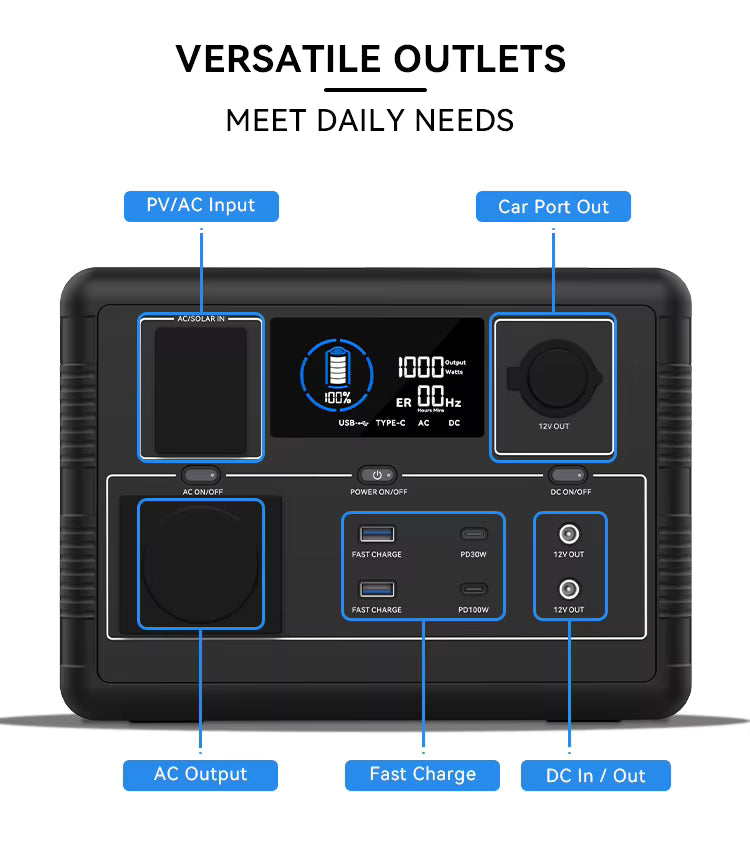 - Versatile charging options: Recharge via AC outlet, car, or solar panel — perfect for home backup, camping, RV, and emergency use